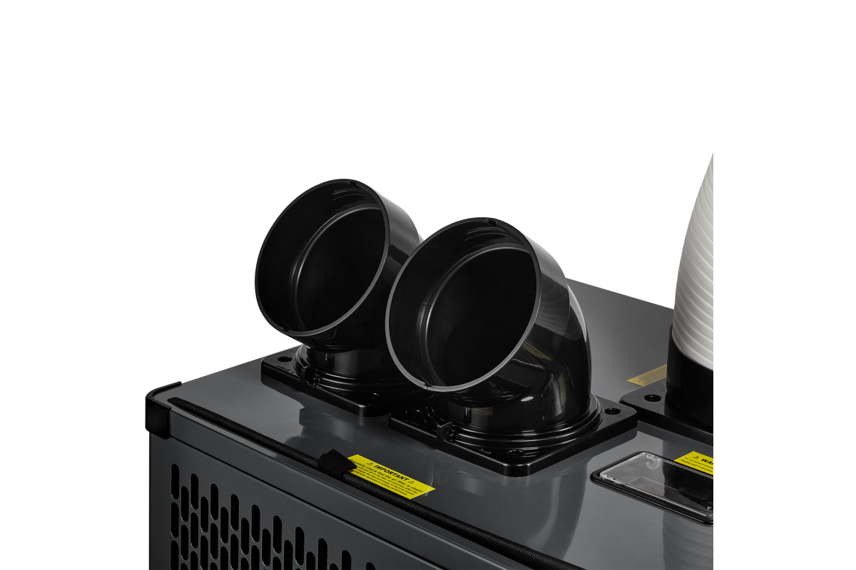В кондиционерах реализовано 3D распределение воздушного потока благодаря гибким патрубкам выполненным из плотного ABS пластика. Каждый из них может быть доукомплектован перфорированным воздухораспределительным рукавом, длиной до 5 метров, обеспечивая полное покрытие помещения.