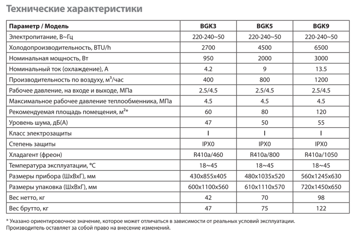 Приборы предназначены для работы в экстремальных условиях и обеспечивают комфорт и прохладу даже там где стандартное климатическое оборудование не проходит порог высоких нагрузок. Ballu BGK отлично справляются с охлаждением больших производственных помещений благодаря воздушному потоку мощностью до 800 м/куб. час. риборы автоматически возобновляет свою работу в случае перебоев с электроэнергией, а мощный компрессор GREE оснащен функцией защиты от перегрузок.
